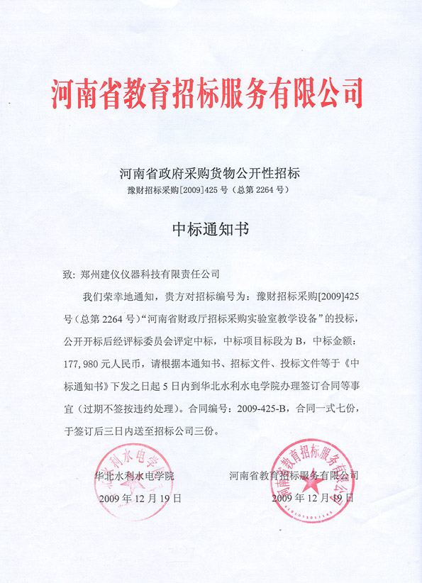豫財(cái)招標(biāo)采購(2009)425號項(xiàng)目B