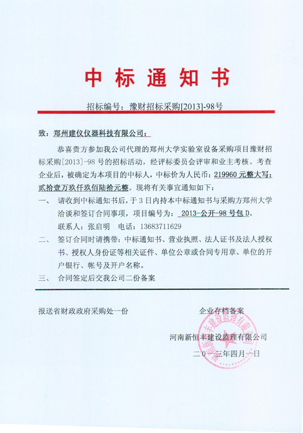 豫財招標(biāo)采購[2013]-98號