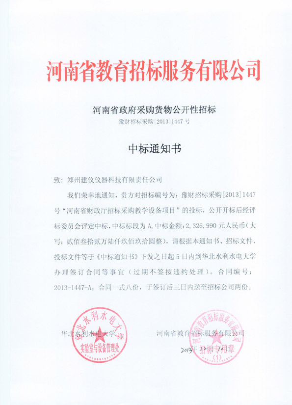 豫財招標(biāo)采購2013-1447號