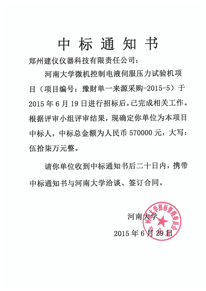 上一篇:河南質(zhì)量工程職業(yè)技術(shù)學(xué)院PZC2014-9588Ag-46236(一標段)中標通知書